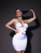 El diseño con pedrería brilla intensamente, agregando un elemento de lujo y sofisticación, mientras que la malla crea una apariencia sutilmente sensual.